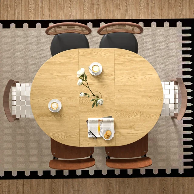 Extendable Round Solid Wood Dining Table with Elaborate Rattan Pedestal for 4-6 People