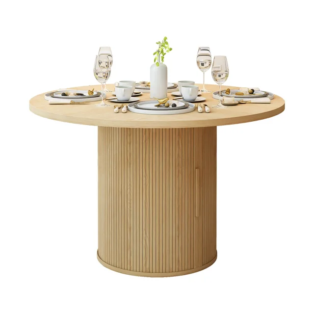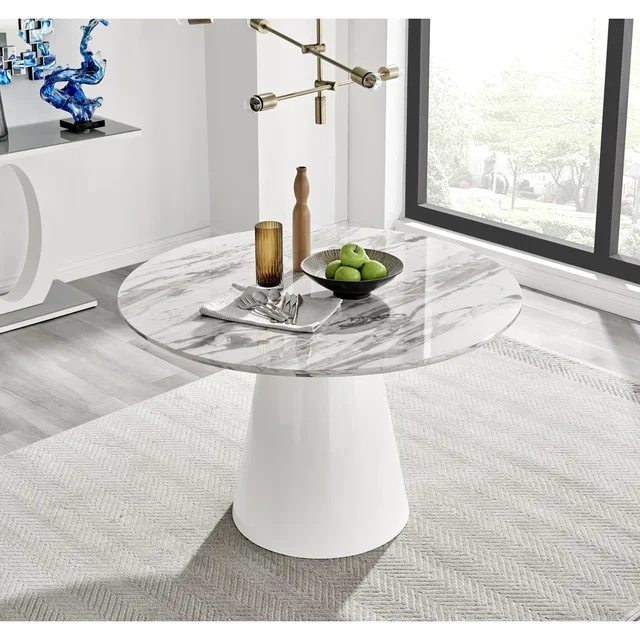 Statement Pedestal Round Dining Table with Sleek, Luxury Modern Aesthetic