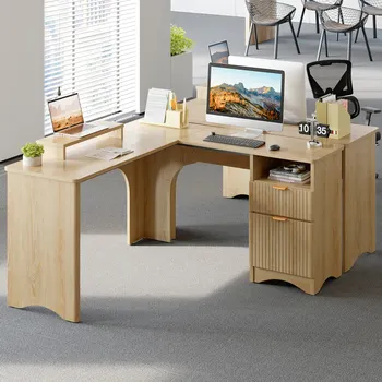 55'' L - Shaped Executive Computer Desk with File Drawers, Storage Drawers and Monitor Stand for Home Office