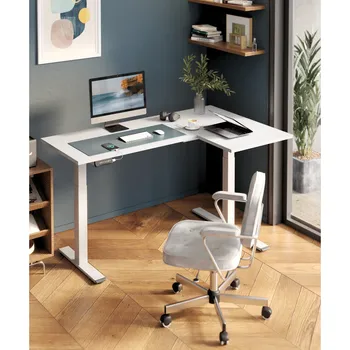 L - Shaped Home Office Altura ajustável Standing Desk com design minimalista moderno