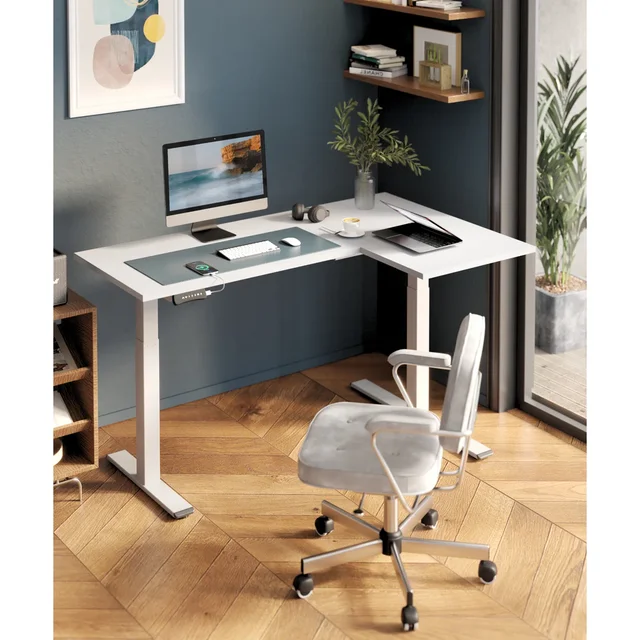 L - Shaped Home Office Height Adjustable Standing Desk with Modern Minimalist Design