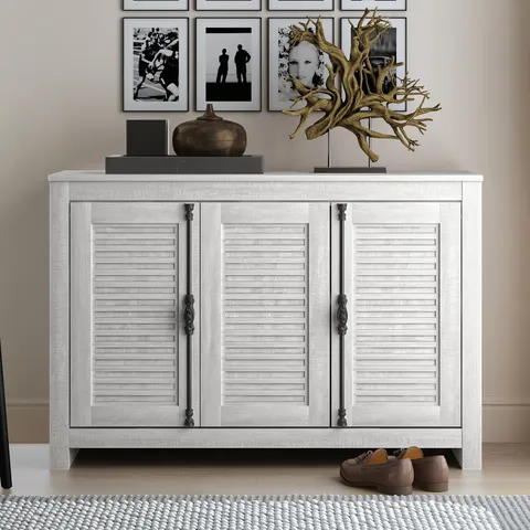 Farmhouse - Style Louvered 3 - Door Shoe Cabinet for Entryway Organization