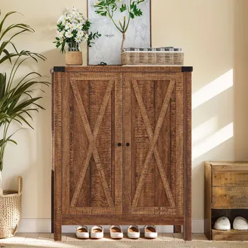 Rustic Farmhouse - Style 20 - Pair Shoe Storage Cabinet with X - Design Doors for Entryway and Hallway Organization